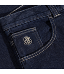 100% Cotton 435 gsm Denim fabric Garment washed YKK Zipper Customised YKK Button Embroidery on change pocket Woven label on waist Low waist Dropped crotch Straight leg Oversized fit Made in Portugal Polar Skate Co.