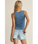 FittedPremium Feather Rib: 95% Cotton, 5% SpandexCrew neckSleevelessWide strapLightweightMineral washMachine Wash Cold, Gentle Cycle, Hang to Dry