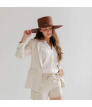 Capri is a boater crown with a flat brim featuring a hat band accessory. Hand woven wheat straw gives Capri its intricate texture + supple nature. Stay confident, cute, + shaded in the Capri.