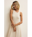 Bodice- Cotton Modal Rib: 50% Cotton, 49% Modal, 1% Spandex Skirt- Airy Textured Rayon: 90% Rayon, 10% Nylon Skirt Lining- Rayon Challis: 100% Rayon