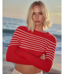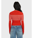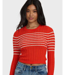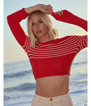 Our fitted long sleeve sweater brings classic style with its timeless crew neckline and sleek metal plate detail. A soft cotton blend keeps you cozy while the ribbed construction ensures a perfect fit. Featured here in the Red colorway.