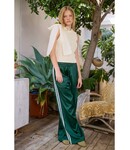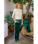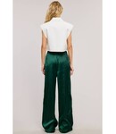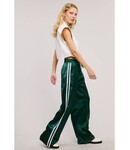 Crafted from a satin-effect fabric, these full-length pants feature an elasticized drawstring waistband, white contrast stripes on the side, two side pockets, and a straight leg fit.