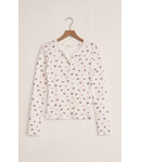 FittedSilky Pointelle: 95% Polyester 5% SpandexHenleyShort sleeveButton frontHeavy soft wash