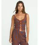 Our split front tank pulls out all the stops with front lacing and jacquard stripes. Perfect for casual days that flow into nights out, this fitted knit tank offers soft comfort in a vibrant wavy pattern.