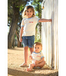 Our Howdy Vintage Ringer Onesie brings a little western charm to the smallest adventurers. Simple, timeless, and full of personality, our classic vintage ringer-style baby onesie features contrast trim at the collar and sleeves. Made from 100% cotton, it’s soft, breathable, and gentle on sensitive skin—keeping babies comfortable whether they’re on the move or fast asleep.