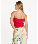 Crinkle jersey tube top Fitted silhouette Empire waist with shirring Interior shelf bra Front keyhole with dolphin charm Woven label