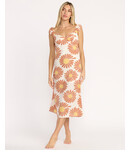 Sunlit brunch calls; you float in, sash-tie fluttering. Soft puff sleeves skim your shoulders. Our midi dress blends airy cotton-linen, a 48-inch V-neck silhouette with adjustable back ties and a subtle metal plate finish.