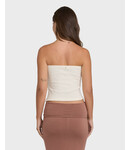 Made from a soft knit blend of cotton and polyester, it hugs without digging and stays comfortable from sunup hangs to last-light strolls. The strapless, body-skimming fit pairs with anything high-waisted, layers cleanly under an open shirt, and in the White Cap color it feels like fresh sand and sea foam in top form. Toss it in your bag, wear it with cutoffs or a bias skirt, and call it your new forever-summer basic. Featured here in the White Cap colorway.